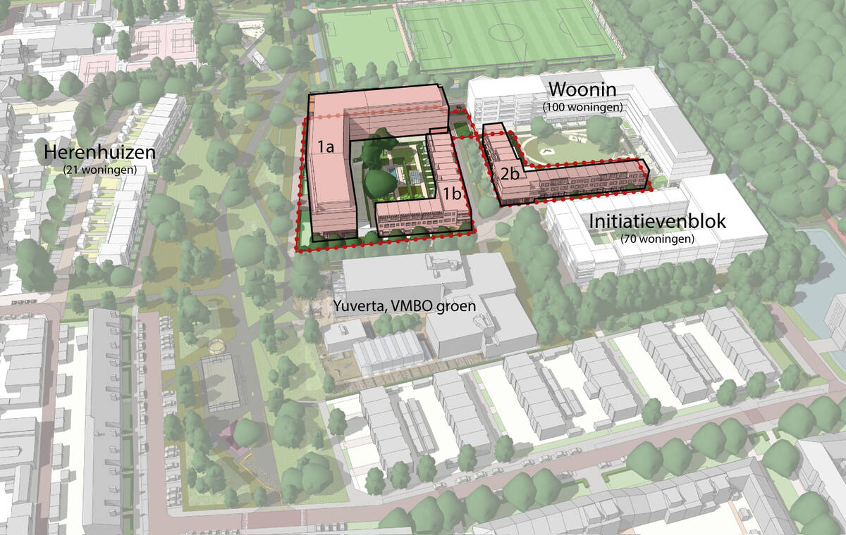 Verdeeld over 2 bouwblokken (1 en 2b) komen 38 eengezinswoningen en 71 appartementen. Hieronder vallen ook 7 woon-werkwoningen. In deze woningen kunnen toekomstige eigenaren ook hun beroep aan huis uitoefenen. Wij moedigen ontwikkelaars aan om aan te sluiten op de collectieve warmte koude opslag (WKO) in het gebied. Hierbij wordt warmte en kou uit de grond gebruikt om de huizen te verwarmen of te koelen.